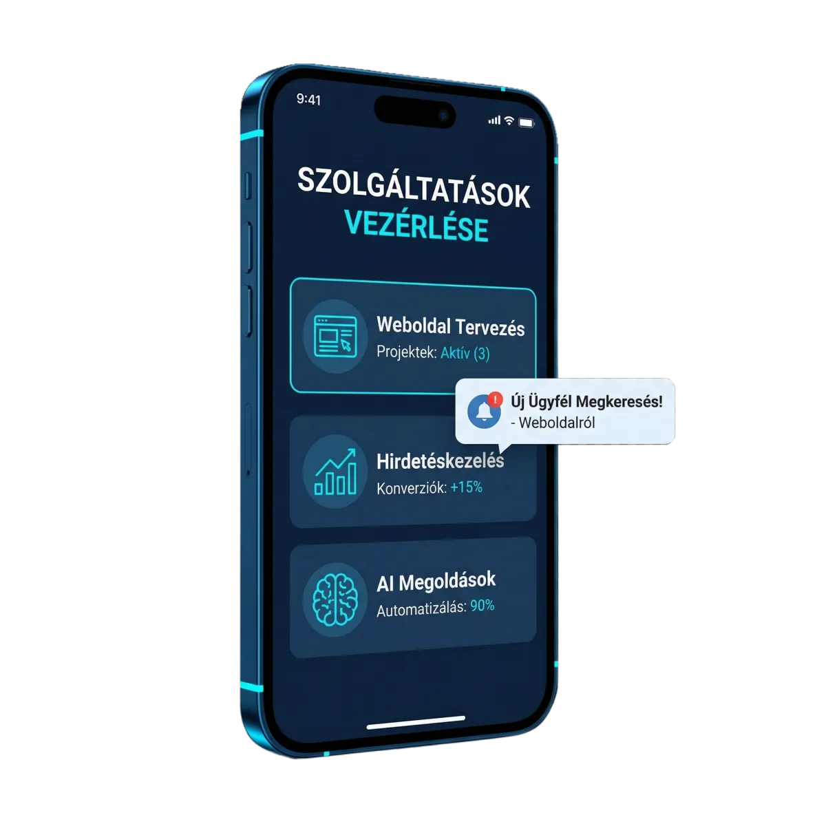 Ez már egy komplex digitális rendszer, ahol a weboldal, a hirdetések, az AI-megoldások és az ügyfélkezelés egy kézben fut össze. Akkor ajánlom, ha nem csak követni, hanem alakítani szeretnéd a piacodat.